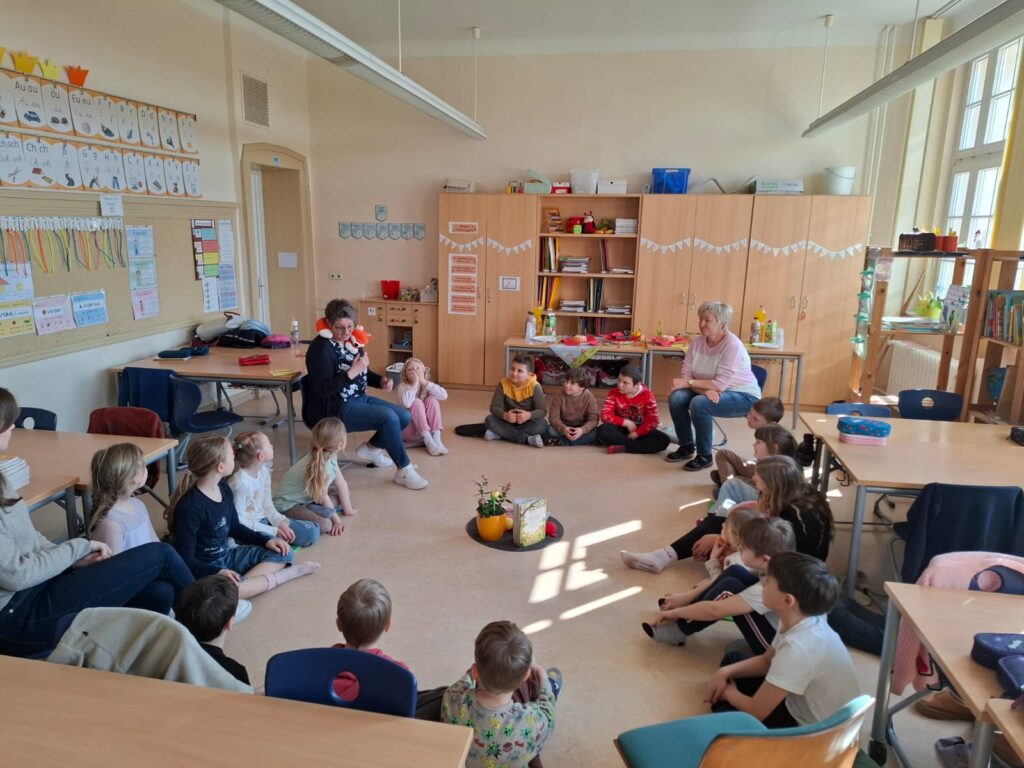 Anlässlich der Leipziger Buchmesse verwandelte sich das Klassenzimmer der 2b in ein gemütliches Lesecafé. Mit viel Vorfreude empfingen die Kinder ihren besonderen Gast: „Kerstin mit dem Lesefuchs“, die ein wunderbares Kinderbuch im Gepäck hatte.